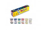 Souprava prstových barev v plastových kalíšcích. Jednotlivé barvy je možné míchat. Zasychají do 30 minut. Vypratelné z většiny běžných textilií. Balení 6 barev, obsah každého...