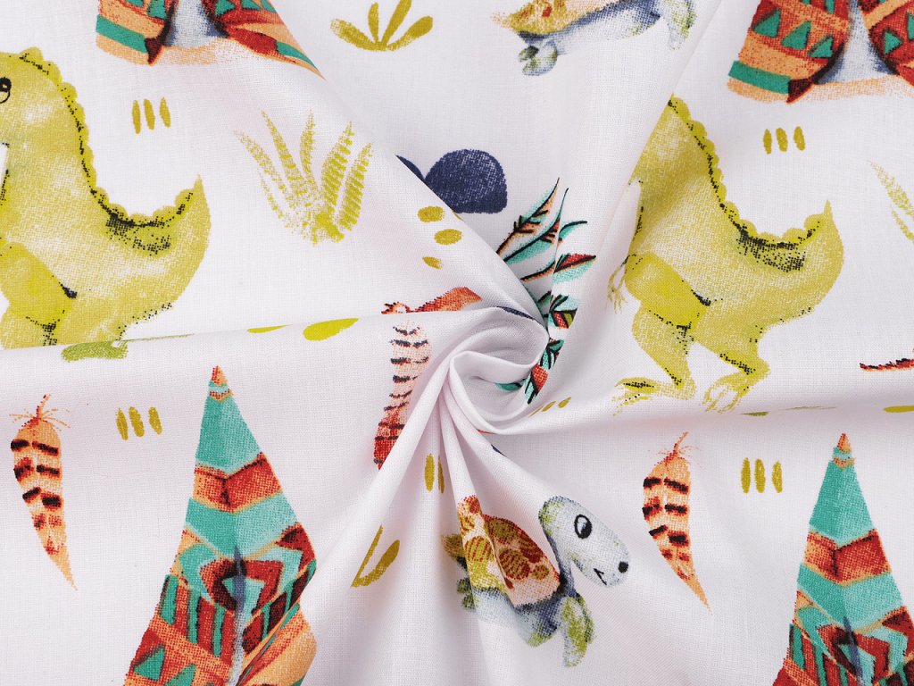 Dinosauři na bavlněném plátně osloví kluky i holky. Ušijete z ní pytlíky, tašky, povlečení do postele, kapsáře a spoustu dalších věcí.Doplňkové parametry