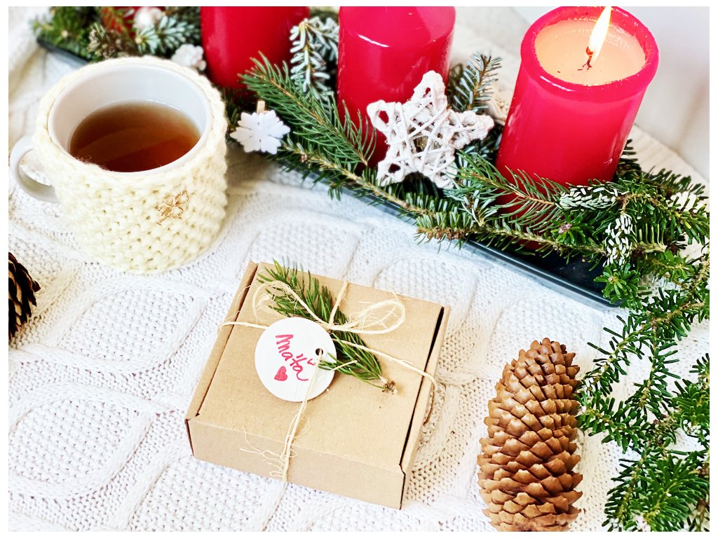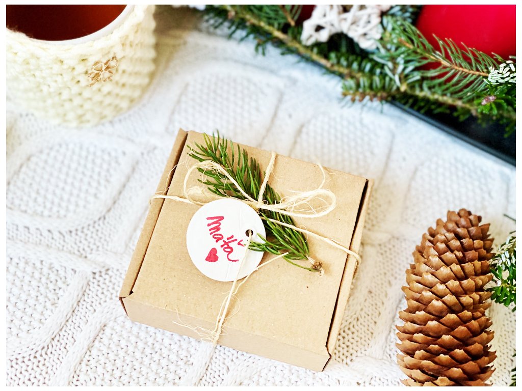 Na zadní stranu, která je čistě bílá a nalakovaná můžete jednoduše fixem napsat jméno obdarovaného a ten si může napřesrok dát jmenovku jako ozdobičku na stromek na památku.