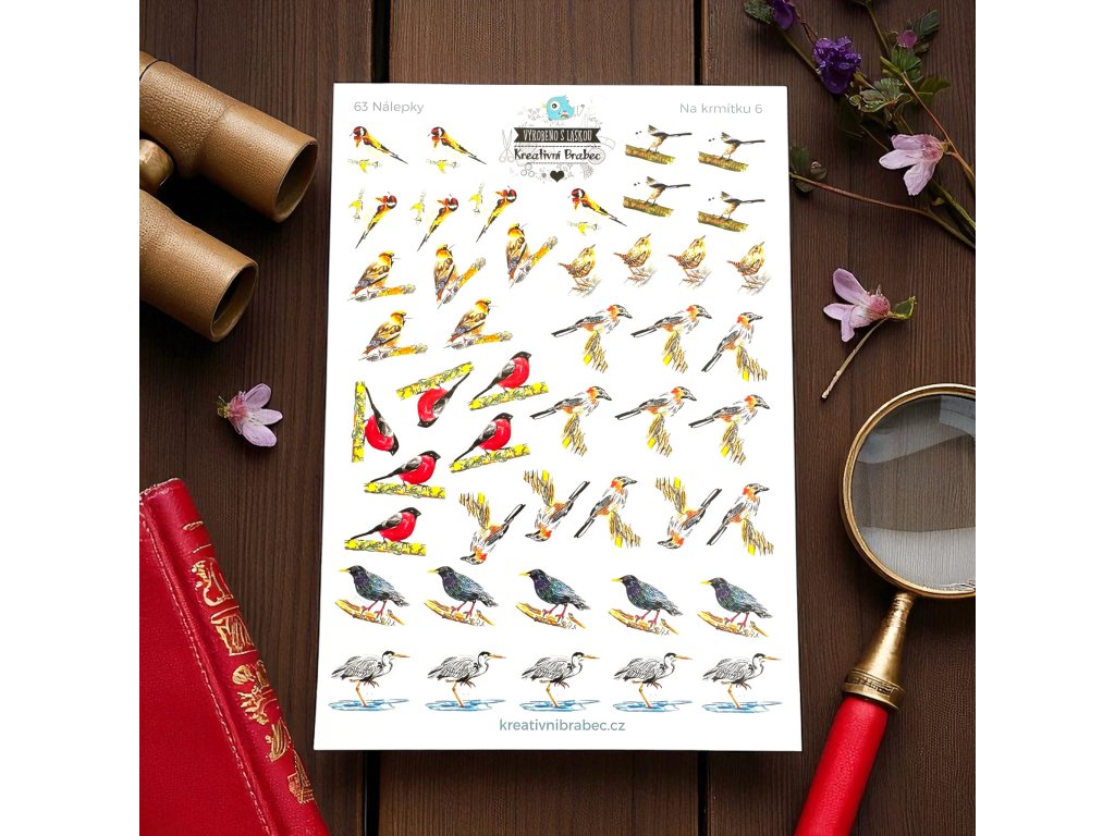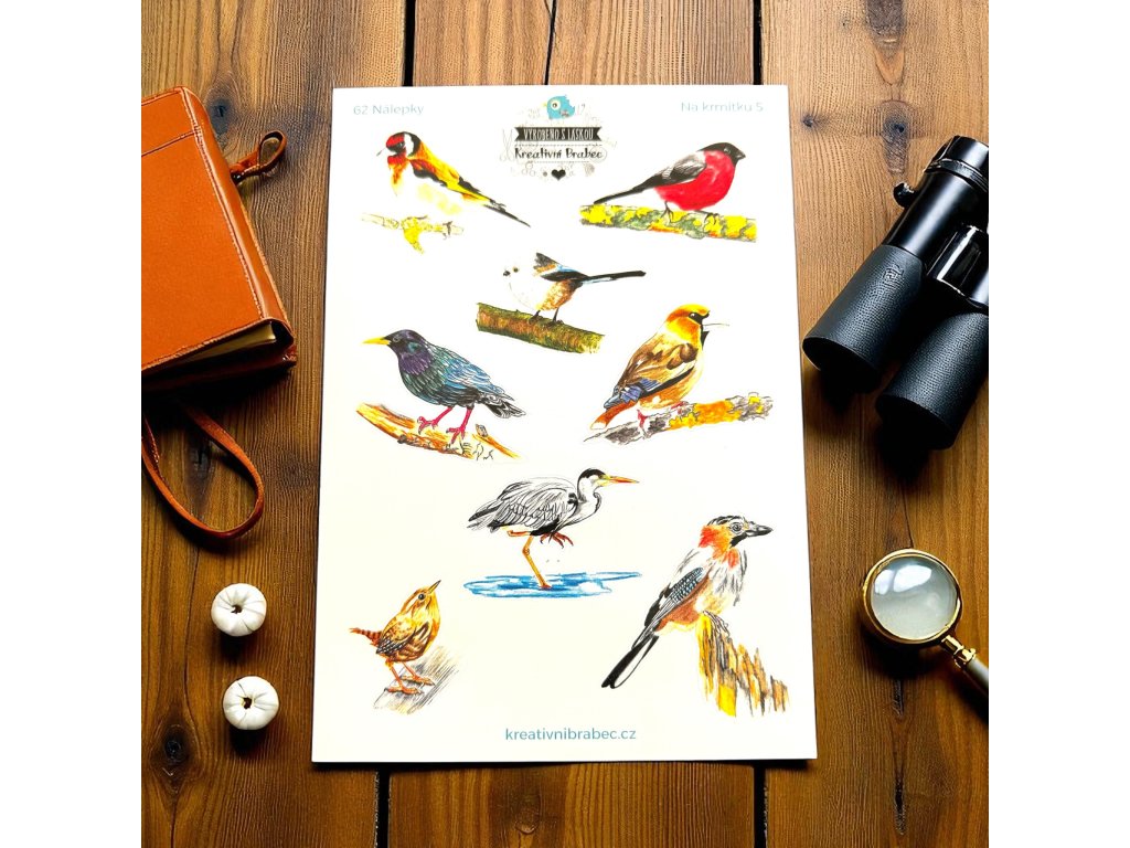 Součástí zápisníčku je i 6 archů samolepek do siluet jednotlivých ptáčků a k vedení pozorovacích zápisků namísto kreseb. Celkem je v balení k dispozici 171 samolepek velkých i malých k evidenci.