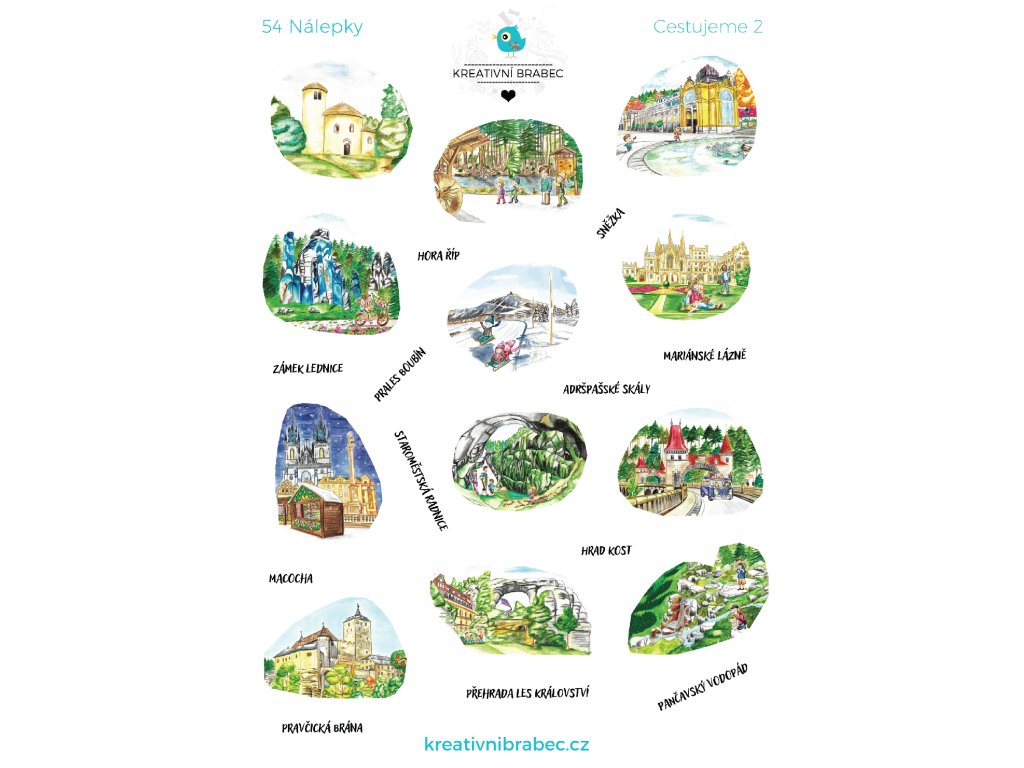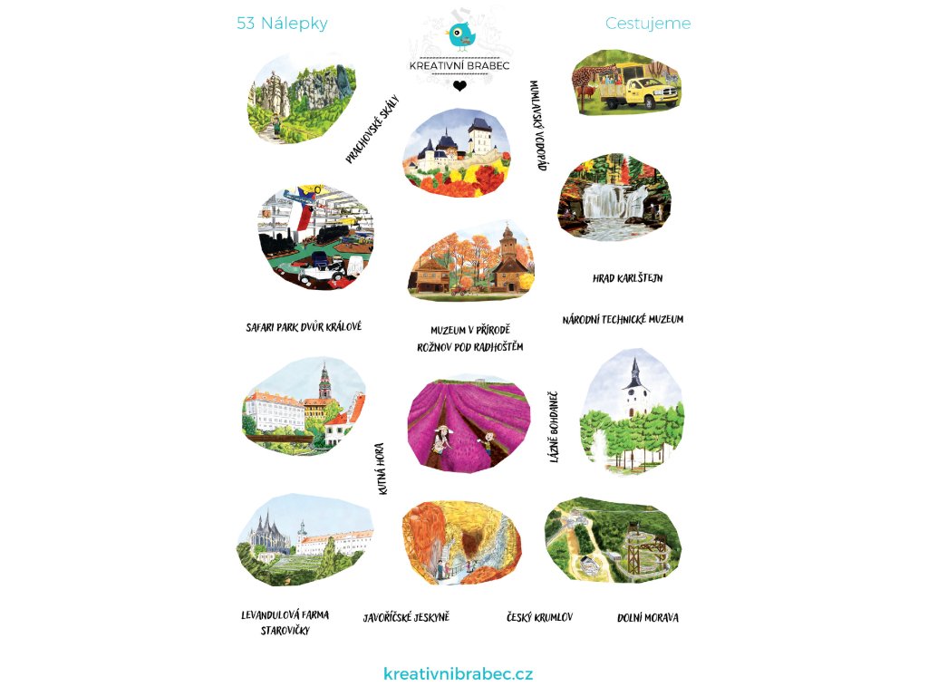 Vytvořili jsme proto mapu a sadu samolepek se samotnými ilustracemi míst a památek, abyste si mohli své výlety lépe označovat. Mapa lze zakoupit i samostatně, ale doporučujeme k nim sadu cestovatelských samolepek.