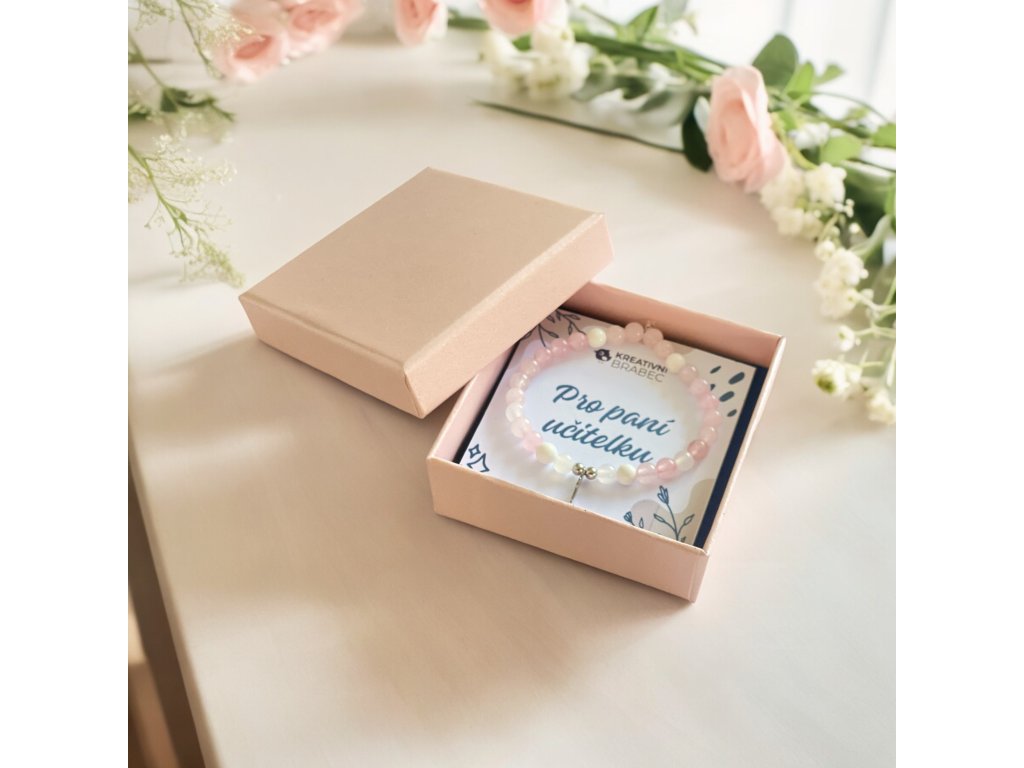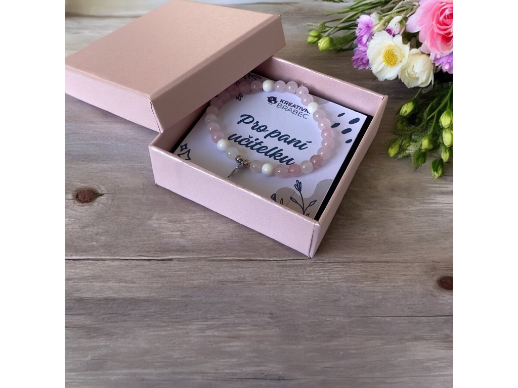 Ručně zpracovaný náramek z růženínu, howlitu a achátu může být i originálním dárkem pro vaše blízké, který zajisté potěší a kterým ukážete, že vám na nich záleží.