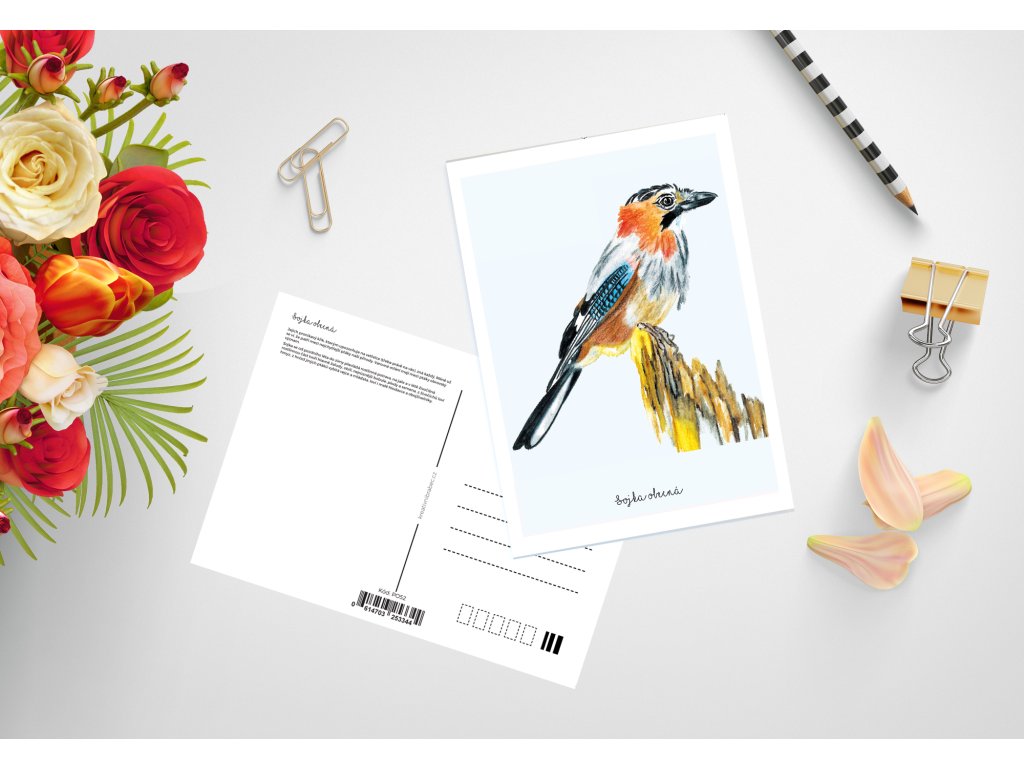 Pohlednice jsou vytištěné na pevném pohlednicovém papíře o gramáži 350 g/m2 s malbou, názvem ptáčka a zadní stranou plnou informací i místem pro váš pozdrav.