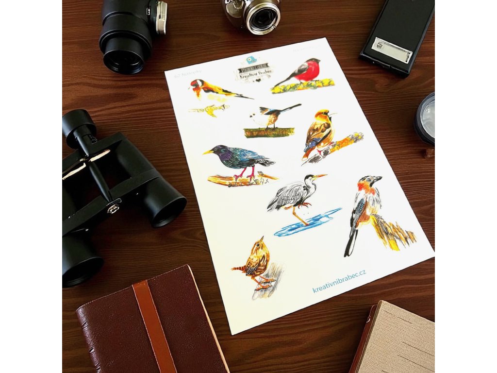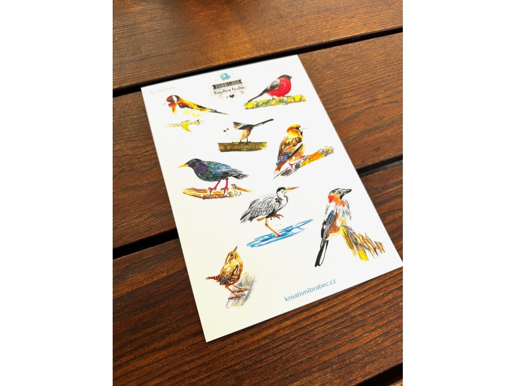 Arch A5 s 8 samolepkami s tématem ptáčci. Ideální pro záznam pozorování ptáčků. Vytvořen s láskou pro vaše další tvoření a plánování. Osvěžte si diář samolepkami nebo podtrhněte fotky ve fotoalbu tematickými obrázky.