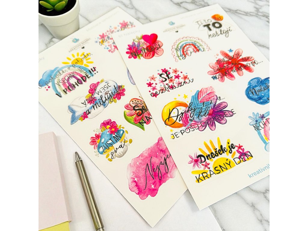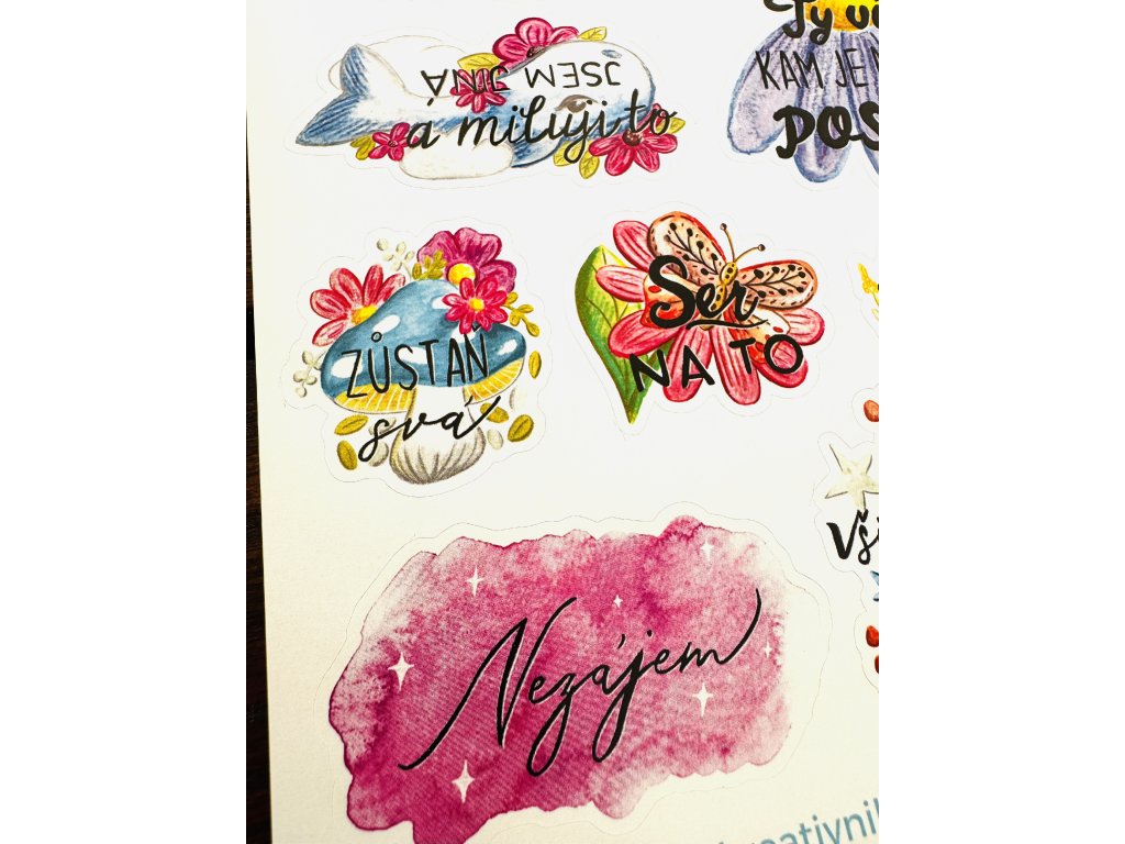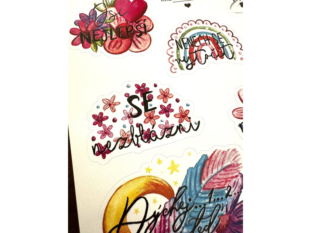 Samolepky jsou vytištěné na kvalitním papírovém podkladu, které se snadno nalepují a pevně drží.
