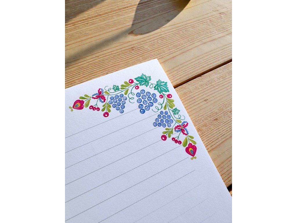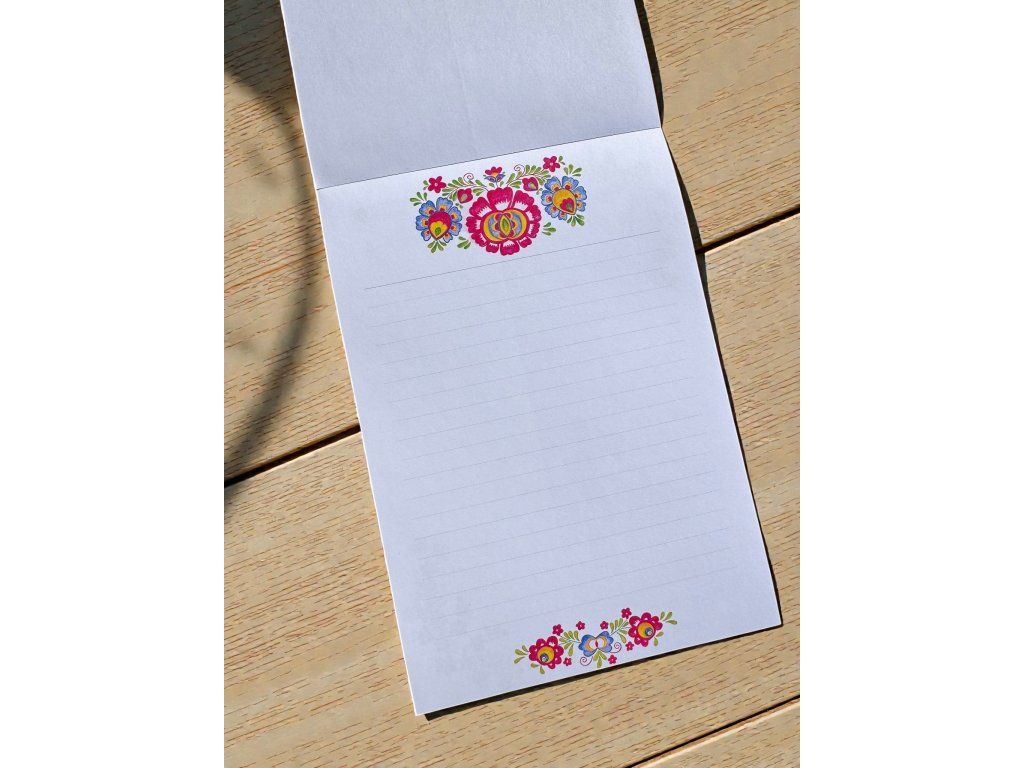 Barevné květinové vzory, jemné ornamenty a lidové motivy připomínají bohatou tradici moravského folkloru a přinášejí do každodenních poznámek kousek lidového umění a kulturní atmosféry.
