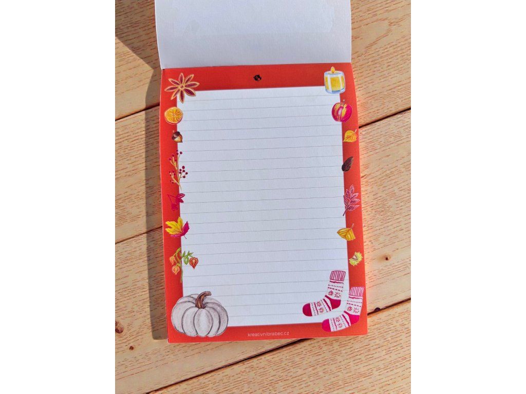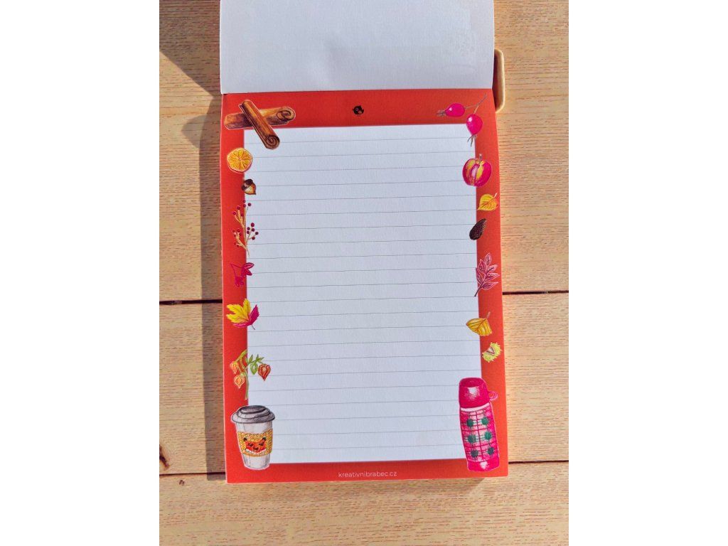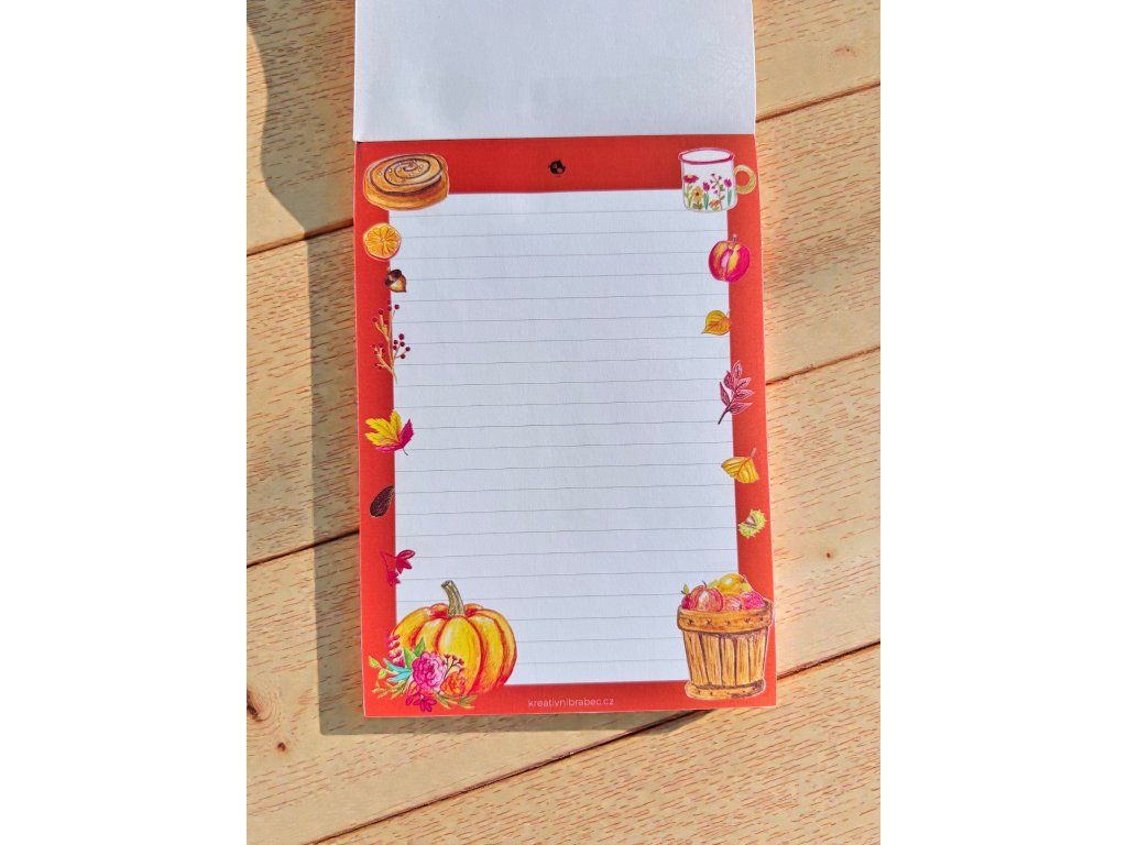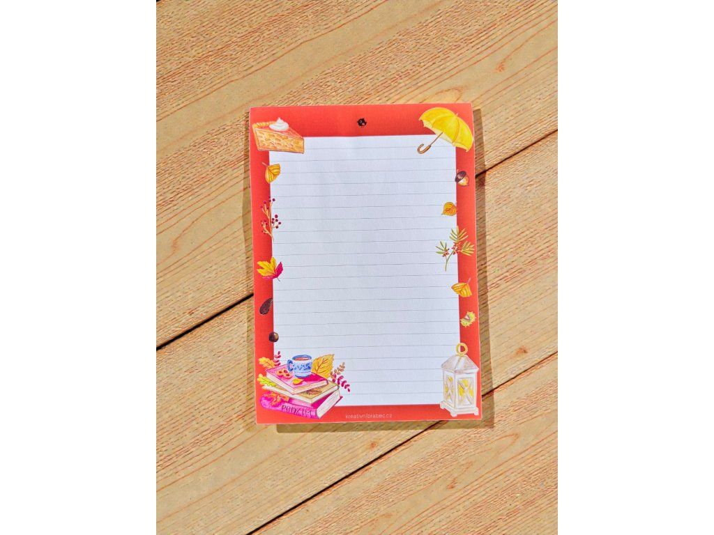 Podzim má své kouzlo – teplý nápoj v ruce, deka přes ramena a chvíle klidu. Tento bloček vám tuhle atmosféru připomene pokaždé, když si budete zapisovat nový nápad.